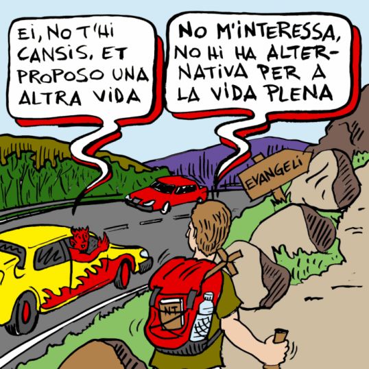 Si algú vol venir amb mi, que es negui a ell mateix, que prengui la seva creu i que em segueixi. Qui vulgui salvar la seva vida, la perdrà, però el qui la perdi per mi, la trobarà.